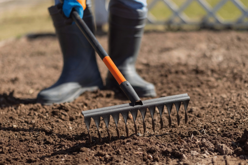 - Atlaisvinkite dirvą grėbliu.
