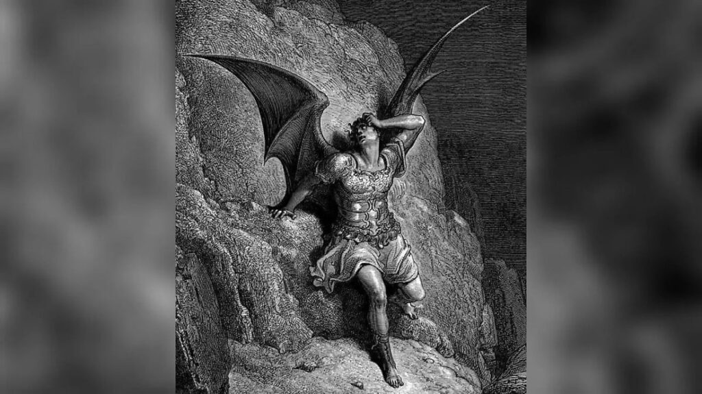 Kadaise jis buvo gražiausias iš angelų, bet laikė save lygiu Kūrėjui. Jo vardas – Liuciferis, „šviesos nešėjas“ – dabar tapo jo nuopuolio simboliu.