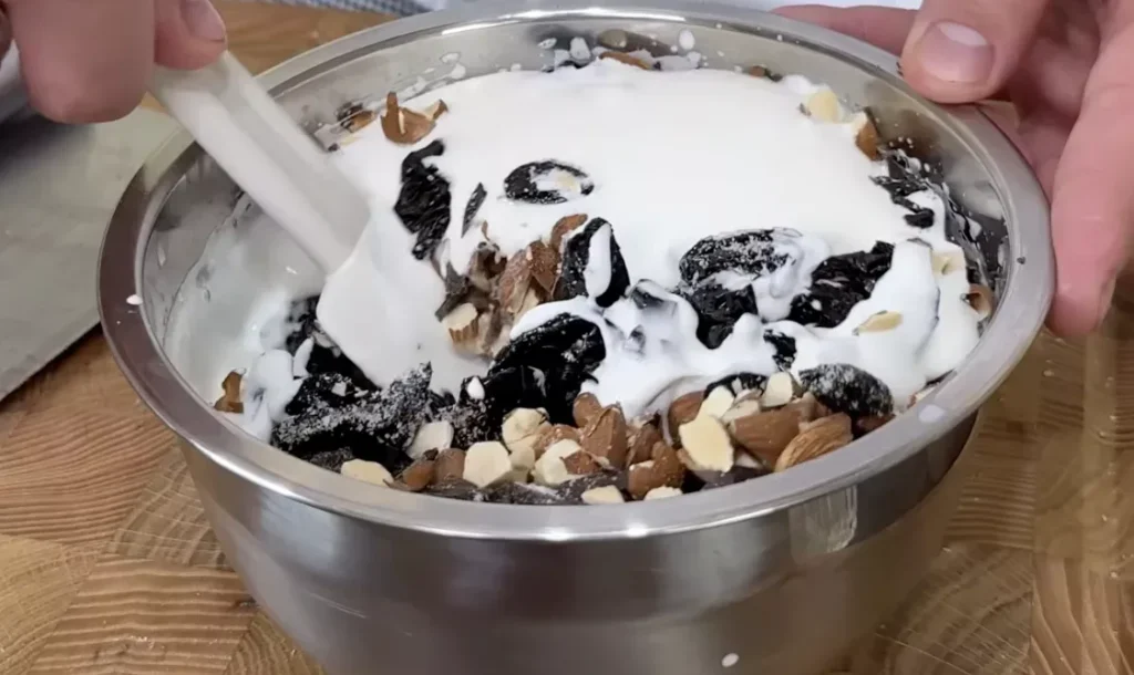 Šis pyragas tikras švenčių išsigelbėjimas: nereikia orkaitės, viskas greitai išmaišoma, o rezultatas minkštas, sodrus ir labai šventiškas. Šokoladas, slyvos, riešutai ir grietinė – tobulas derinys!