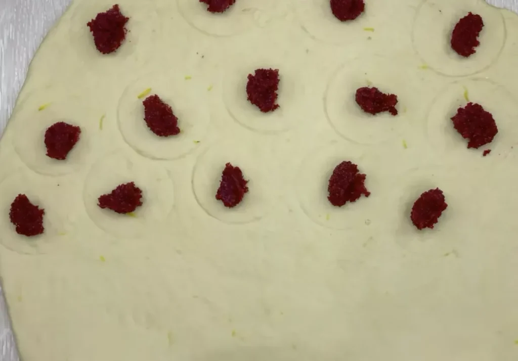 Šiltas pienas sumaišomas su mielėmis ir trupučiu cukraus. Palaikoma šiltoje vietoje 20–30 minučių, kol atsiras putų ir mielės suaktyvės. Tada suberiamas cukrus, vanilinis cukrus, įmušamas kiaušinis, ištirpintas sviestas, aliejus, druska ir įtarkuojama žievelė. Išmaišoma, suberiami persijoti miltai ir užminkoma tešla.