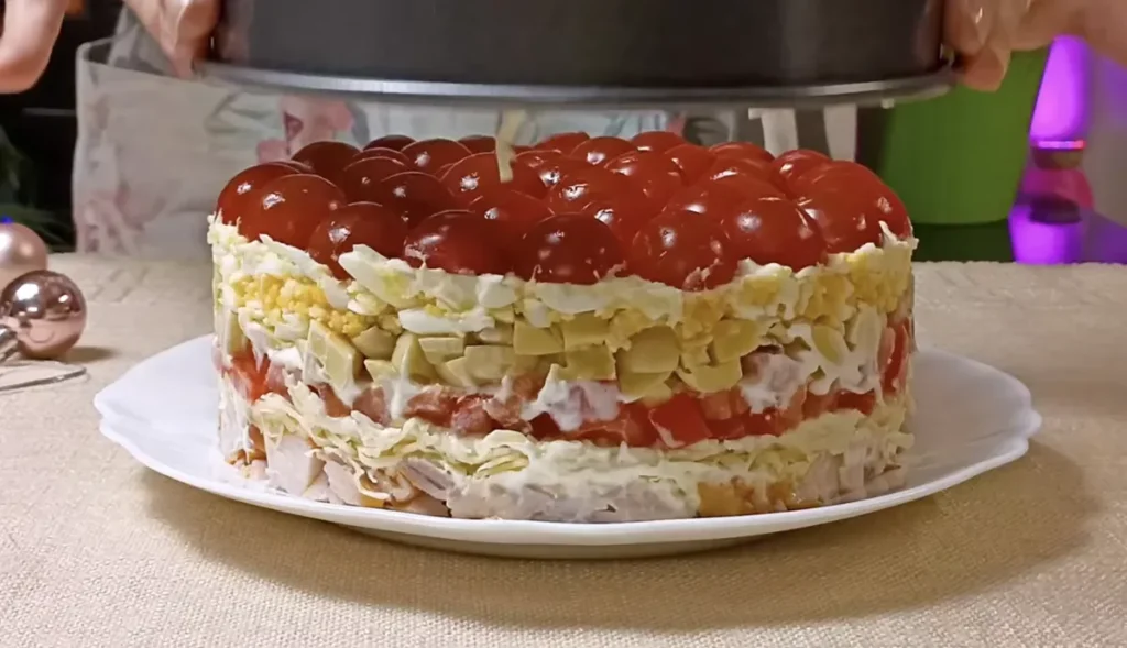 Įspūdingos, ryškios ir sultingos salotos, kurių pavadinimas kilo dėl sultingų raudonų pomidorų.