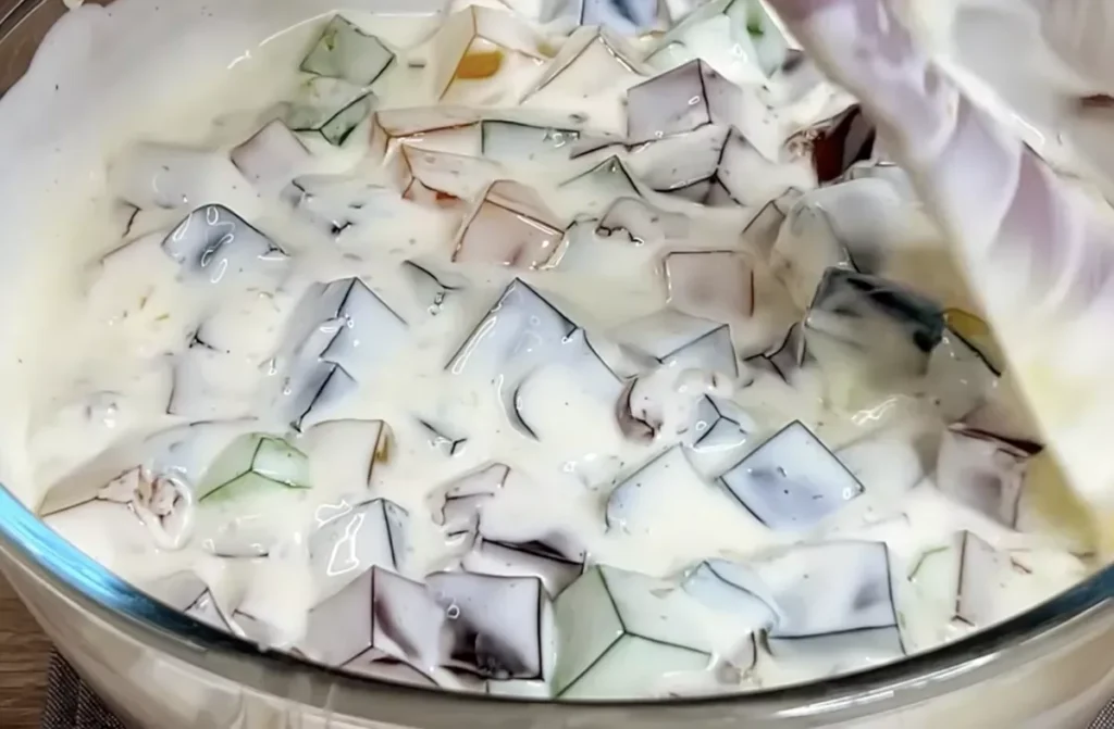 Kiekvieną želė pakelį ištirpinkite stiklinėje verdančio vandens (200–250 ml). Maišykite, kol visiškai ištirps. Įdėkite į šaldytuvą, kol visiškai sustings. Tada supjaustykite želė kubeliais.