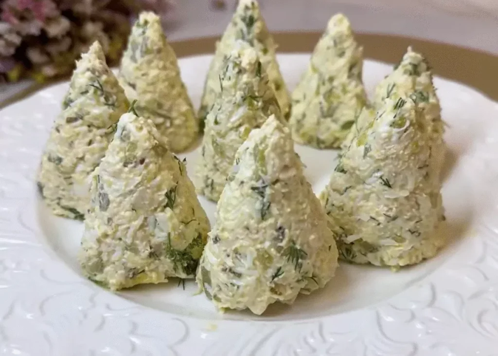 Užkandis „Yalynka“ su vištienos filė, kiaušiniais, sūriu ir marinuotais agurkais – paprastas ir greitas pasirinkimas, kurio paruošimas trunka vos 5 minutes, tačiau jis atrodo šventiškai ir originaliai. Tai bus šventinio stalo akcentas, kurį pamėgs tiek suaugusieji, tiek vaikai, o granatų sėklos suteiks ryškumo ir kontrasto.