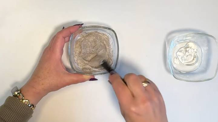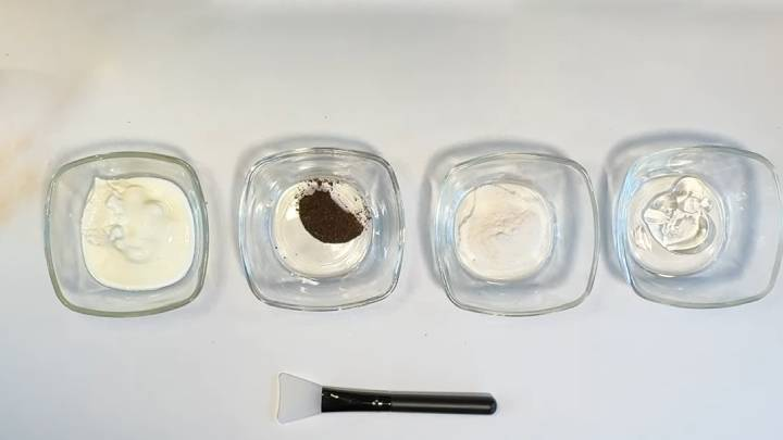 Švariame dubenyje sumaišykite grietinę (arba paprastą jogurtą) ir ryžių miltus (baltuosius, ne viso grūdo ryžius). Įpilkite kavos ir alavijo gelio.